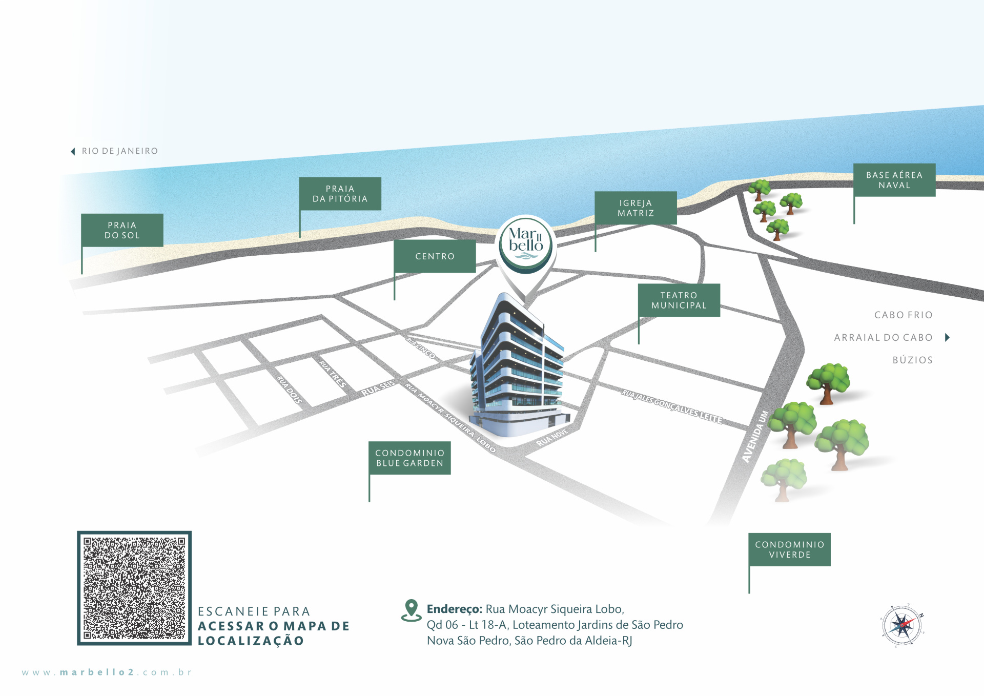 O Residencial Marbello II está estrategicamente situado em uma localização privilegiada na cidade de São Pedro da Aldeia para você desfrutar de uma vida cercada de conveniências e facilidades, com uma variedade de opções de lazer, gastronomia e serviços ao seu alcance.